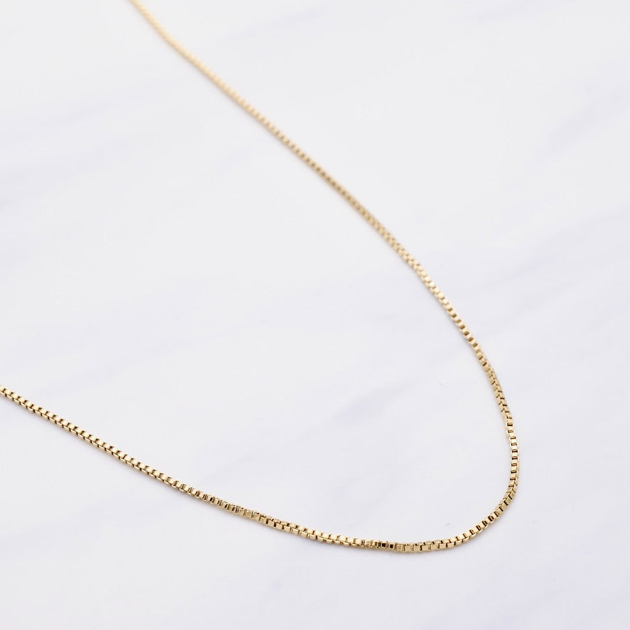 Die feine Goldkette wirkt elegant und modern zugleich.